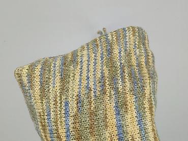 - Wzór i kolor: melanż w odcieniach beżu, oliwki, błękitu i kremu; prążkowana faktura dzianiny