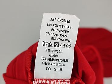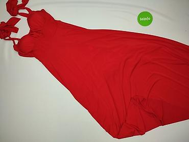 Czerwona sukienka damska na ramiączkach, rozmiar M. Wykonana w 100% z poliestru, Made in Italy. Krój dopasowany w górnej części z pionowymi przeszyciami modelującymi sylwetkę, dół rozszerzany. Na s...