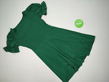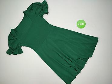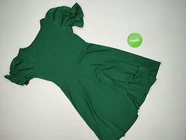 Zielona sukienka damska, rozmiar S - Fason: hiszpanka/off-shoulder – szeroki dekolt z falbanką, można nosić opuszczony na ramiona - Rękawy: krótkie, bufiaste z elastycznymi mankietami - Materiał: ...