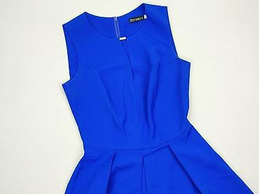 Sukienka damska, rozmiar S, kolor intensywny kobalt/niebieski. Krój fit & flare z zaakcentowaną talią i rozkloszowanym, plisowanym dołem. Góra z krótkim rękawem i okrągłym dekoltem, modelujące zasz...