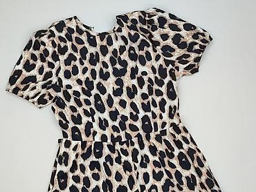 Sukienka damska w zwierzęcy print - Krój: mini, lekko rozkloszowany dół - Dekolt: kopertowy w kształcie litery V, z delikatnym marszczeniem i małym guziczkiem przy biuście - Talia: elastyczna gumk...