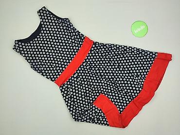 Sukienka damska bez rękawów, rozmiar XL. - Kolor: granatowy z nieregularnym, białym wzorem plamek/pędzla. - Fason: luźny, lekko rozkloszowany dół, okrągły dekolt. - Zapięcie: suwak z tyłu. - Ma...