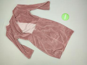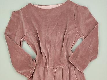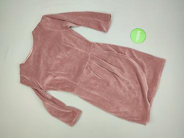 Sukienka damska z weluru, różowa (pudrowy/antyczny róż) - Fason: dopasowana mini, krótki rękaw, okrągły dekolt - Materiał: 65% poliester, 35% bawełna – elastyczny, miękki, o lekko połyskującej, „c...