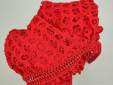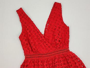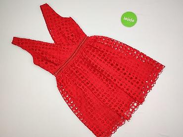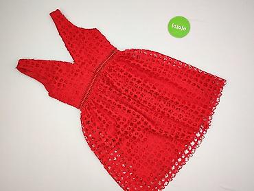 Czerwona sukienka damska Home, rozmiar S. - Fason: ołówkowy, przylegający, długość midi/przed kolano - Dekolt okrągły - Koronkowe wstawki na ramionach i górnej części pleców w kwiatowy wzór - Krót...