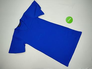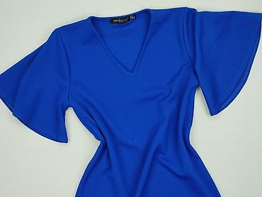 Sukienka damska, kolor kobaltowy (chabrowy), rozmiar S. - Krój: dopasowana góra, rozkloszowany dół. - Rękaw: krótki. - Dekolt: okrągły. - Materiał: elastyczna dzianina z tłoczonym, roślinnym wzorem...