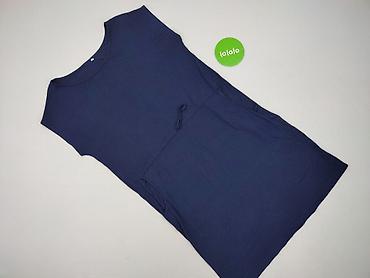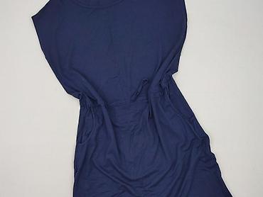 Sukienka damska, granatowa, z miękkiej dzianiny. - Prosty fason typu T-shirt z okrągłym dekoltem i krótkim, opadającym rękawkiem. - Talia regulowana sznurkiem – możliwość dopasowania sylwetki. - F...