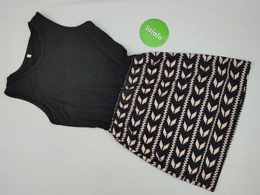 Sukienka damska bez rękawów, dopasowana, z elastycznej dzianiny. - Rozmiar: S (na metce) - Krój: ołówkowy, długość przed kolano, okrągły dekolt - Wstawki z czarnego, gładkiego materiału przy ramion...