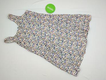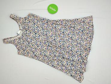 Sukienka damska bez rękawów, rozmiar S. - Wzór: dynamiczne pasy/maziaje w odcieniach granatu, bieli i beżu. - Krój: luźny, trapezowy; okrągły dekolt marszczony gumką; ramiączka z delikatną falb...