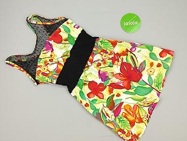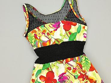 Sukienka damska z kolorowym, kwiatowo-roślinnym printem - Rozmiar: S (metka widoczna na zdjęciu) - Krój: dopasowana góra, rozkloszowany dół - Rękaw: krótki - Dekolt: łagodnie zaokrąglony z ozdobny...
