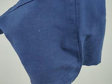 - Dodatkowe informacje wizualne: widoczne drobne zagniecenia lnu; na granatowej części materiału pojedyncza mała kropka i niewielkie oczko