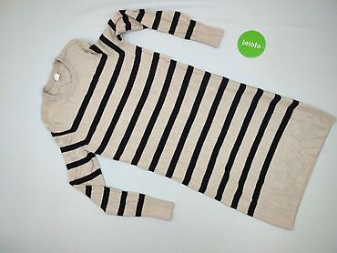 Sukienka swetrowa damska Reserved - Rozmiar: S - Fason: dopasowany, dzianinowy - Wzór: szerokie poziome pasy w kolorze czarnym i beżowym - Długość: mini/przed kolano - Rękaw: 3/4 z prążkowanymi ma...