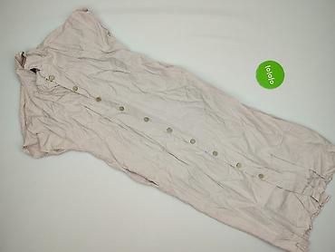 Sukienka damska w kolorze pudrowego różu - Rozmiar: 38 (z metki) - Krój: prosta, luźniejsza góra z delikatnym zwężeniem w talii; dół z zaokrąglonym, lekko wydłużonym tyłem - Dekolt: w kształcie li...