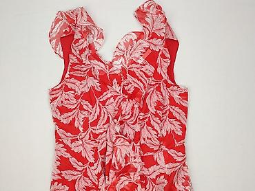 Sukienka damska bez rękawów, rozmiar M - Krój: luźny, lekko rozkloszowany, długość midi - Dekolt: okrągły z zapięciem na guzik z tyłu - Wzór: intensywny orientalno‑kwiatowy na czerwonym tle; dół z...