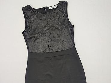Sukienka damska Like Tina, rozmiar S - Kolor: czarny - Fason: dopasowana, bez rękawów, długość przed kolano - Dekolt i ramiona z wstawkami z ekoskóry dodającymi rockowego charakteru - Przód z ozdo...