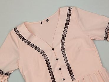 Sukienka damska w kolorze pudrowego różu - Rozmiar: 38 (z metki) - Krój: prosta, luźniejsza góra z delikatnym zwężeniem w talii; dół z zaokrąglonym, lekko wydłużonym tyłem - Dekolt: w kształcie li...
