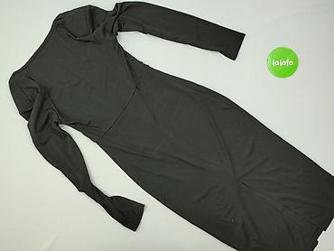 Czarna, prążkowana sukienka damska z długim rękawem - Fason: dopasowany, ołówkowy, długość za kolano/„midi” - Rękaw: długi - Dekolt: łagodnie zabudowany z przodu, delikatne marszczenie/zakładki pr...