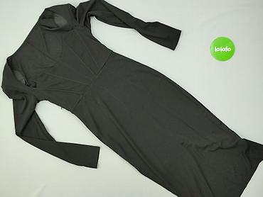Czarna sukienka damska Sheer, rozmiar 40 - Krój: dopasowany, ołówkowy, długość za kolano - Rękaw: 3/4 - Dekolt: w kształcie litery V z podwójną, kontrastową lamówką w kolorze jasnoszarym - Detale:...