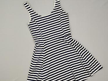 Sukienka damska House Collection – rozmiar S - Krój: dopasowany, długość przed kolano, bez rękawów, okrągły dekolt - Wzór: granatowe tło w białe paski z kwiatowym nadrukiem (różowo‑zielona roślinn...