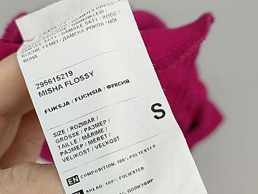 Sukienka damska MISHA, rozmiar S - Krój: mini, taliowana z marszczeniem/ściągaczem w pasie, lekko rozkloszowany dół - Rękaw: krótki - Dekolt: okrągły - Wzór: drobna łąka – wielobarwne kwiaty na ci...