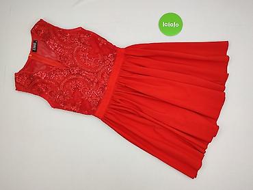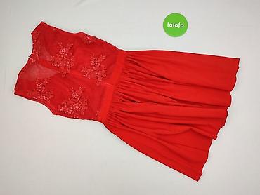 Sukienka damska ESCLAVA DE MODA, rozmiar 36. - Kolor: intensywna czerwień. - Krój: rozkloszowany dół do kolan, odcięcie w talii podkreślające sylwetkę. - Góra: koronkowa z florystycznym haftem, pó...