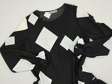 Sukienka damska M, Made in Italy - Kolor: czarny z drobnym nadrukiem w wąsy i kropki - Krój: dopasowana góra, odcięcie w talii, rozkloszowany dół z marszczeniem - Rękaw: długi - Dekolt: okrągły - ...