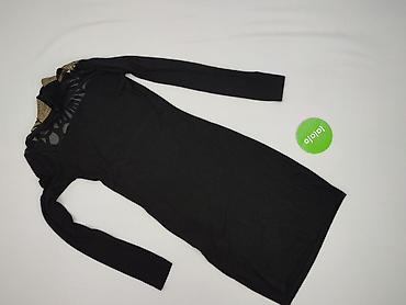 Czarna sukienka damska Sans Souci, rozmiar S (EU S, USA S, MEX 26). - Fason: rozkloszowany dół z zakładkami, dopasowana góra. - Dekolt: głęboki w kształcie V z przodu i z tyłu. - Rękaw: 3/4. - Mat...