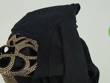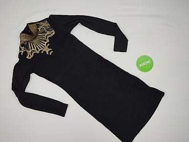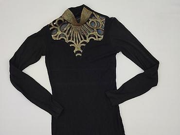 Sukienka dzianinowa damska, czarna - Krój: prosta, długość mini/za kolano (tunika-sukienka) - Dekolt: w kształcie litery V, ozdobiony efektownymi aplikacjami z błyszczących kryształków/sztrasów w ...