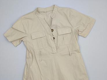 Sukienka koszulowa damska, beżowa - Fason: koszulowy, zapinany na guziki z przodu - Długość: do kolan (midi) - Rękaw: krótki, luźny (kimono/dolman) - Kołnierz: klasyczny koszulowy - Kieszenie: dwi...