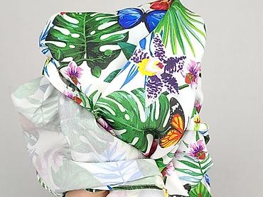 - Wzór: kolorowy motyw tropikalny – liście monstery i palm, kwiaty, motyle; tło białe.