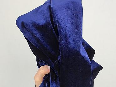 Sukienka damska welurowa, kolor granatowy (intensywny, z lekkim połyskiem). - Fason: dopasowany, długość przed kolano (mini/za kolano w zależności od wzrostu). - Rękaw: długi. - Dekolt: w ksz...