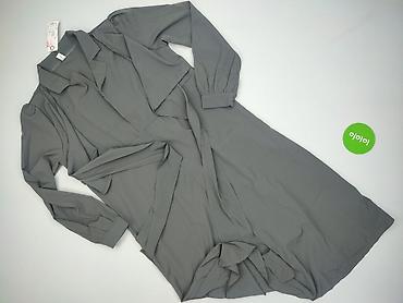Sukienka damska, rozmiar S. - Kolor: jasnoszary. - Krój: góra luźna z okrągłym dekoltem i krótkimi, opadającymi rękawkami; talia podkreślona szerokim, połyskującym pasem. - Dół: asymetryczny, z kil...