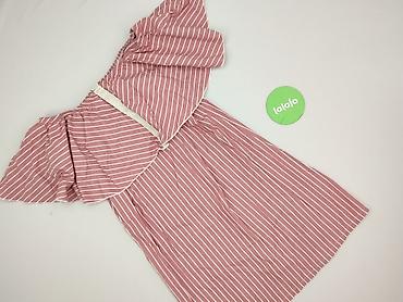 Sukienka damska w paski - Krój: mini, rozkloszowany dół, lekko odcinana w talii - Dekolt: okrągły - Rękawy: krótkie, falbaniaste - Wzór: cienkie, pionowe paseczki w odcieniach błękitu, beżu i biel...