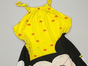 Żółta sukienka bez rękawów w białe grochy - Krój: luźny, oversize, trapezowy z marszczeniami/zaszewkami z przodu i z tyłu - Długość: midi (wg proporcji na zdjęciach) - Dekolt: okrągły - Kieszenie:...
