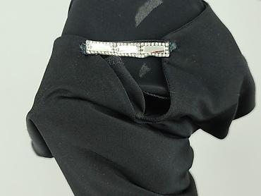 Sukienka damska, czarna, z delikatnym połyskiem. - Krój: luźny, odcinana w talii z dwiema falbanami/warstwami na dole, krótkie rękawy, okrągły dekolt. - Materiał: 95% poliester, 5% elastan – elas...