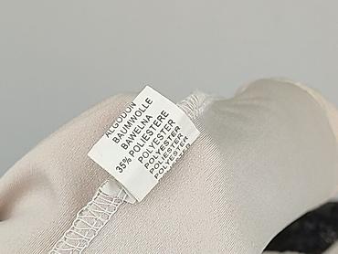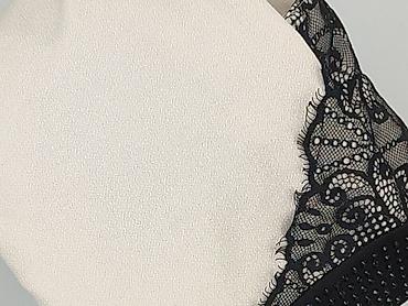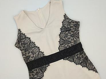Sukienka damska, rozmiar L. - Fason: ołówkowy, długość midi (przed kolano), z krótkim rękawem - Kolorystyka: beżowo‑czarna, z wyszczuplającymi panelami po bokach - Przód: efektowna, duża aplikacja...
