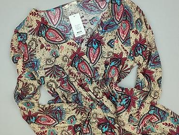 Sukienka damska F&F - Model: dzianinowa sukienka mini/tunika z krótkim rękawem - Wzór: orientalny/paisley na kremowym tle, dekoracyjna bordiura u dołu - Dekolt: w kształcie litery V z metalową wst...