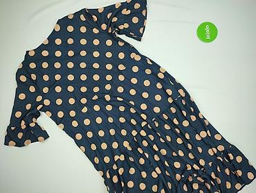Granatowa sukienka w kropki, damska - Rozmiar z metki: L/XL - Fason: taliowana z elastyczną gumką w pasie, rozkloszowany dół - Rękaw: 3/4 z delikatnym ściągaczem - Dekolt: w serek z krótką stójką ...