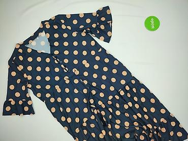 Sukienka damska Okay, rozmiar 44 - Kolor: granatowy w jasne groszki - Krój: kopertowy/zakładany na dekolcie z falbankami; odcięcie w talii, lekko rozkloszowany dół - Detale: falbanki przy dekolcie...