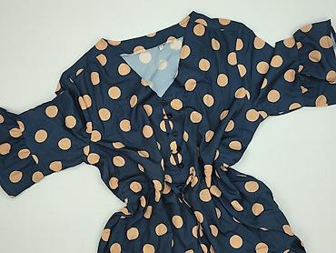 Sukienka damska Lea H., rozmiar M - Krój: kopertowy (z wiązaniem w pasie), subtelnie asymetryczny dół z falbaną - Wzór: granatowa w białe nieregularne kropki - Rękaw: krótki - Materiał: - tkanin...