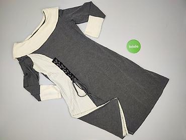 Sukienka damska, rozmiar 40, kolor grafitowy/szary. - Fason: midi, z rozkloszowanym dołem - Dół: lekko transparentny, drobno plisowany, na podszewce - Góra: miękka dzianina, kopertowe marszczenie ...