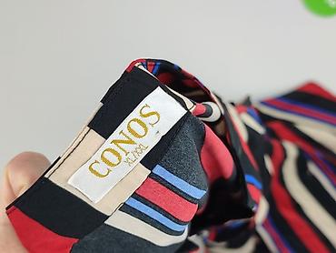 Sukienka damska CONOS, rozmiar M/L - Krój: luźny, lekko rozszerzany; długość mini/tuż nad kolano - Dekolt: okrągły z ozdobnym wycięciem i cienkimi, podwójnymi ramiączkami krzyżującymi się na pleca...