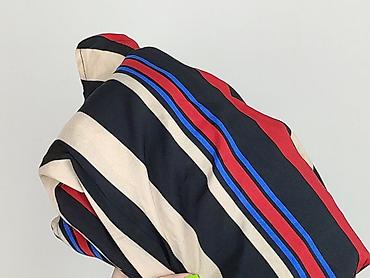 - Wzór: pionowe/skośne paski w kolorach czarnym, czerwonym, beżowym i niebieskim – optycznie wysmuklają sylwetkę
