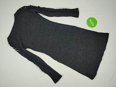 Sukienka dzianinowa Sinsay Basic - Model: dopasowana, midi - Kolor: grafitowy melanż - Rozmiar: XS - Fason z odkrytymi ramionami (cold shoulder) - Długie rękawy - Stójka/golf - Materiał elastyczny...