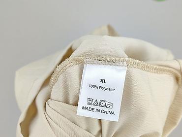 Sukienka damska, beżowa, rozmiar XL - Krój: mini/za kolano, rozkloszowany dół - Dekolt: łezka z zapięciem z tyłu na guzik - Rękawy: długie, z gumką przy mankietach; wycięcia na ramionach (cold-sho...