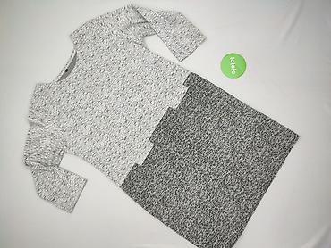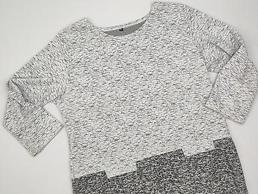 Sukienka damska XL, dzianinowa, melanżowa, w odcieniach szarości. Fason prosty, długość za kolano. Rękawy 3/4. Okrągły dekolt. Dwukolorowy panelowy dół – ciemniejsza część oddzielona od jasnej geometryczną linią „schodków”, co optycznie wysmukla sylwetkę. Miękka, elastyczna tkanina o drobnym, prążkowanym splocie zapewnia wygodę i dobre dopasowanie. Idealna na co dzień i do pracy. Marka: XYZ (metka wewnętrzna widoczna na zdjęciu).