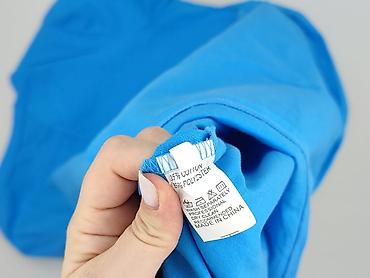 Sukienka damska, jasnoniebieska. - Fason: rozkloszowany dół z marszczeniami, odcięcie w talii, krótkie rękawy, okrągły dekolt - Długość: midi - Materiał: 65% bawełna, 35% poliester (metka na zdjęc...