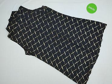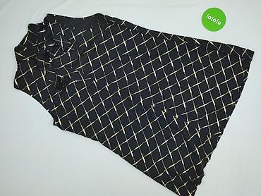 Sukienka damska bez rękawów, rozmiar XL. - Fason: dopasowana góra, rozszerzany dół do kolan (midi), zakładki/panelowe cięcia podkreślające talię. - Dekolt: okrągły. - Wzór: granatowa baza z biały...