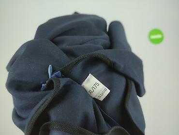 Sukienka damska, granatowa, z krótkim rękawem. - Krój: dopasowany w talii, długość przed kolano. - Dekolt: okrągły. - Zapięcie: suwak z tyłu. - Materiał: mieszanka tkanin (na metce widoczne m.i...