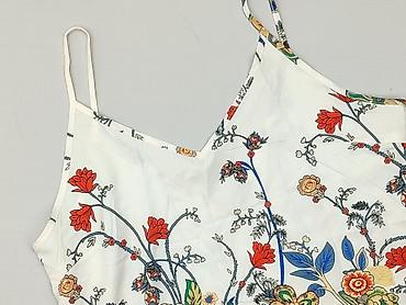 Sukienka damska H&M w kwiaty - Fason: rozkloszowana mini, bez rękawów, na szerokich ramiączkach - Kolor/pattern: białe tło z nadrukiem kwiatów w odcieniach czerwieni, różu i niebieskiego; zielone ...