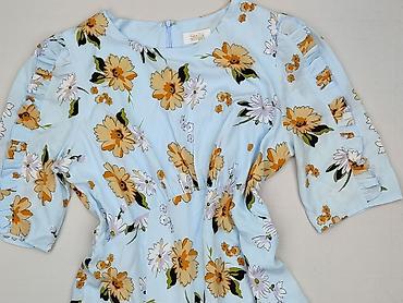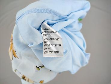 - Kolor: jasny błękit (light blue) z dużym, kwiatowym nadrukiem w odcieniach żółci, bieli i zieleni